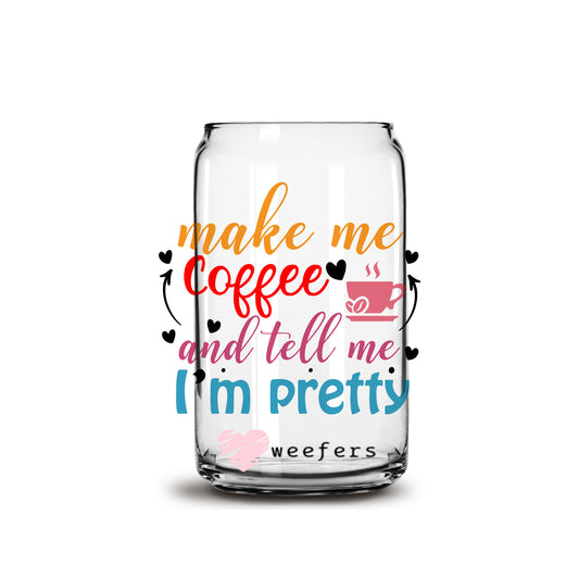 Make me Coffee and Tell me I'm Pretty 16oz Libbey Glass Can UV DTF or Sublimation Wrap - Decal