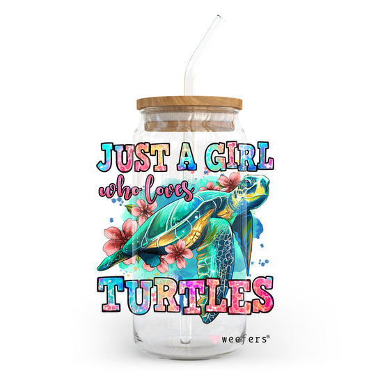 Just a Girl Who Loves Turtles 20oz Libbey Glass Can, 34oz Hip Sip, 40oz Tumbler UV DTF or Sublimation Decal Transfer