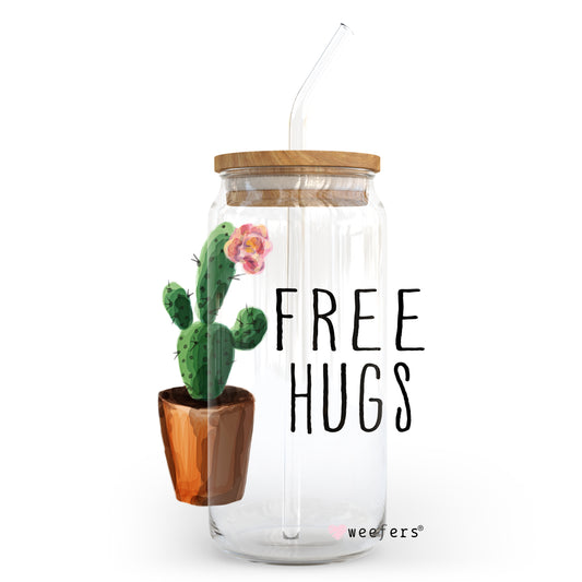 Free Hugs Cactus 20oz Libbey Glass Can, 34oz Hip Sip, 40oz Tumbler UV DTF or Sublimation Decal Transfer