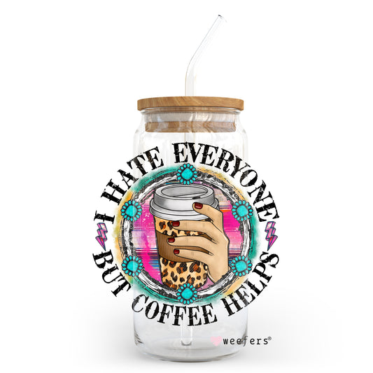 I Hate Everyone But Coffee Helps 20oz Libbey Glass Can, 34oz Hip Sip, 40oz Tumbler UV DTF or Sublimation Decal Transfer