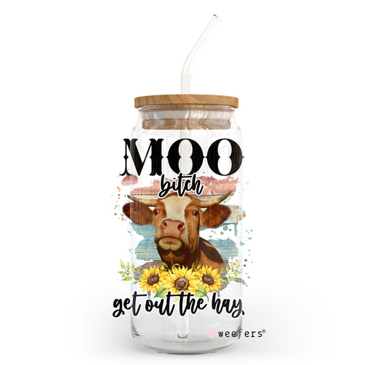 Funny Moo Cow 20oz Libbey Glass Can, 34oz Hip Sip, 40oz Tumbler UV DTF or Sublimation Decal Transfer