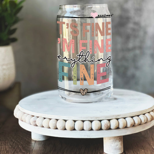 It's Fine I'm Fine Everything is Fine 16oz Libbey Glass Can UV DTF or Sublimation Wrap - Decal