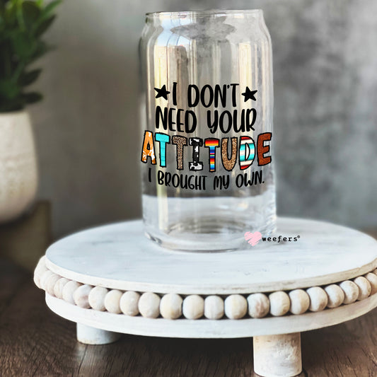 I Don't Need Your Bad Attitude I Brought My Own 16oz Libbey Glass Can UV DTF or Sublimation Wrap - Decal