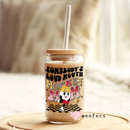 Somebody's Loud Mouth Hockey Mom Retro 16oz Libbey Glass Can UV DTF or Sublimation Wrap - Decal