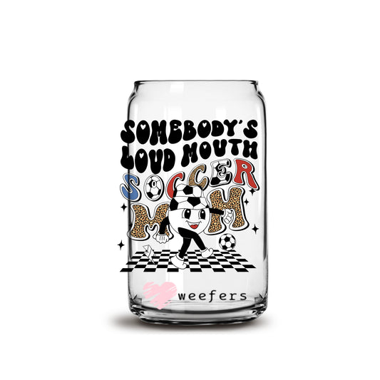 Somebody's Loud Mouth Soccer Mom Retro 16oz Libbey Glass Can UV DTF or Sublimation Wrap - Decal