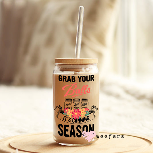 Grab Your Balls It's Canning Season 16oz Libbey Glass Can UV DTF or Sublimation Wrap - Decal
