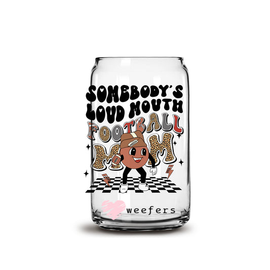 Somebody's Loud Mouth Football Mom Retro 16oz Libbey Glass Can UV DTF or Sublimation Wrap - Decal