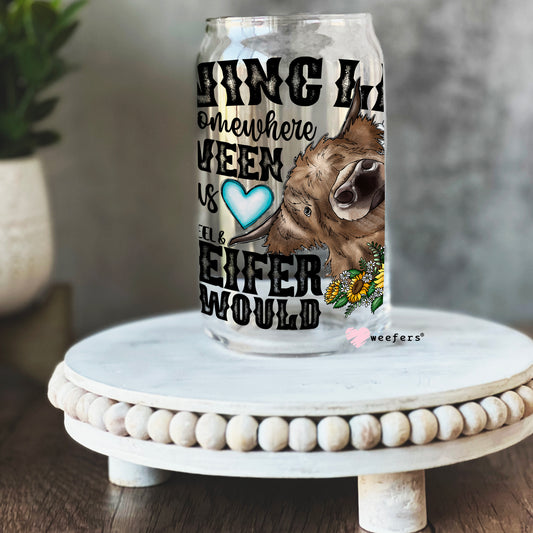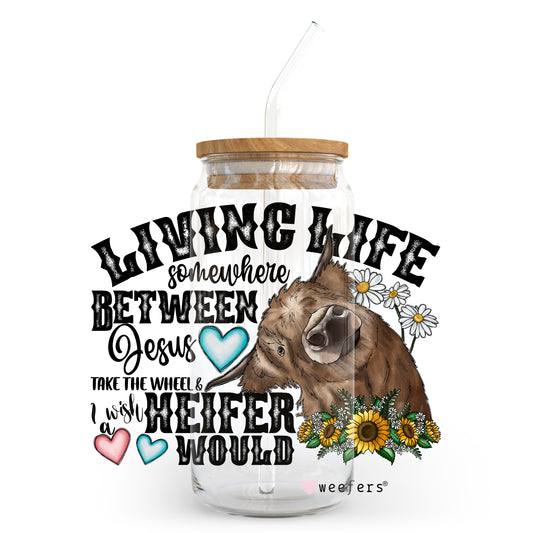 Funny Living Life 16oz Libbey Glass Can UV DTF or Sublimation Wrap - Decal