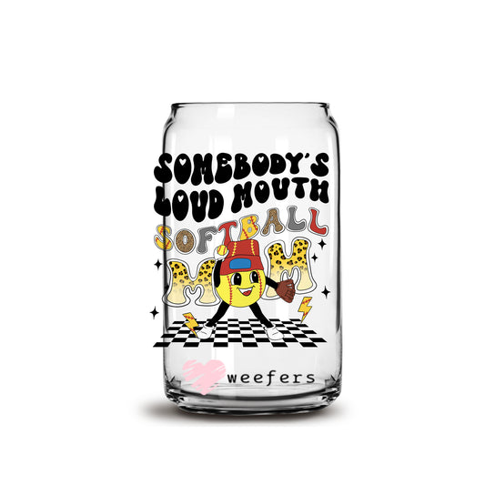 Somebody's Loud Mouth Softball Mom Retro 16oz Libbey Glass Can UV DTF or Sublimation Wrap - Decal