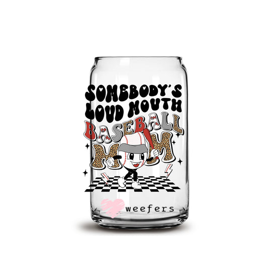 Retro Somebody's Loud Mouth Baseball Mom 16oz Libbey Glass Can UV DTF or Sublimation Wrap - Decal