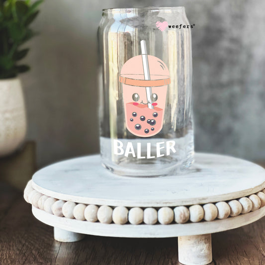 Baller Boba 16oz Libbey Glass Can UV DTF or Sublimation Wrap - Decal