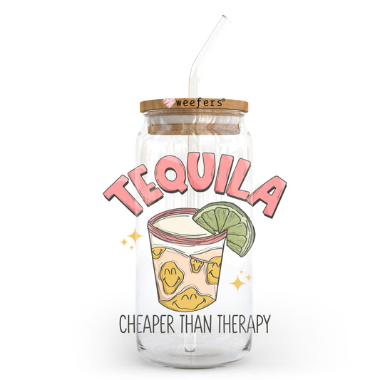 Tequila Cheaper than Therapy 20oz Libbey Glass Can, 34oz Hip Sip, 40oz Tumbler UV DTF or Sublimation Decal Transfer