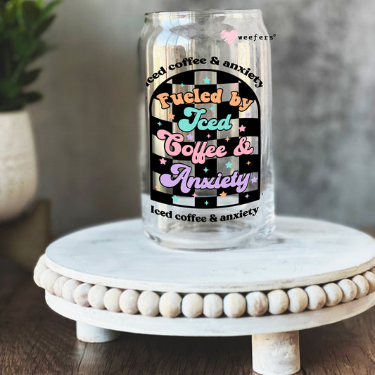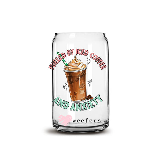 Fueled by Iced Coffee and Anxiety 16oz Libbey Glass Can UV DTF or Sublimation Wrap - Decal