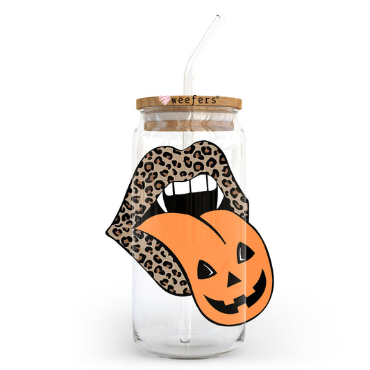 Leopard Pumpkin Lips Halloween 20oz Libbey Glass Can, 34oz Hip Sip, 40oz Tumbler UV DTF or Sublimation Decal Transfer