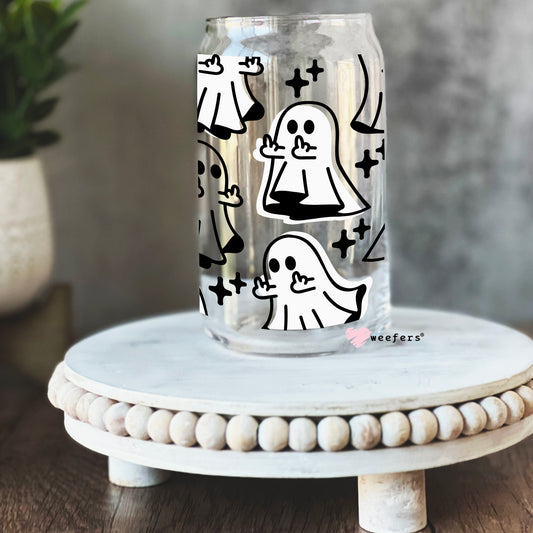 Funny Middle Finger Ghost 16oz Libbey Glass Can UV DTF or Sublimation Wrap - Decal