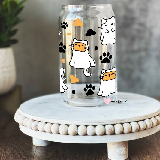Halloween Cat Ghost 16oz Libbey Glass Can UV DTF or Sublimation Wrap - Decal