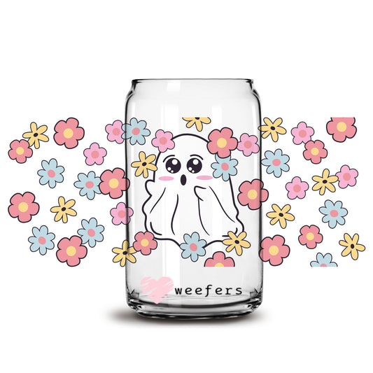 Retro Ghost Halloween 16oz Libbey Glass Can UV DTF or Sublimation Wrap - Decal