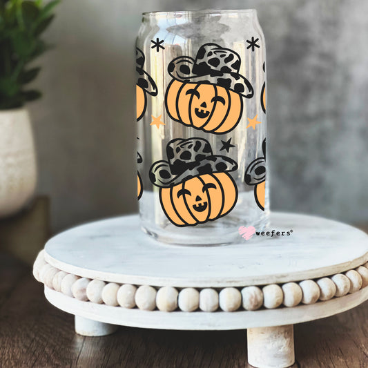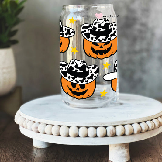 Cowboy Jack-O-Lanterns 16oz Libbey Glass Can UV DTF or Sublimation Wrap - Decal