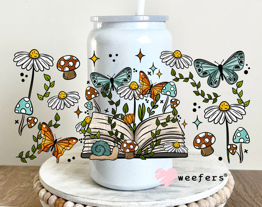 Open Book Butterflies and Mushrooms UV DTF Cup Wrap