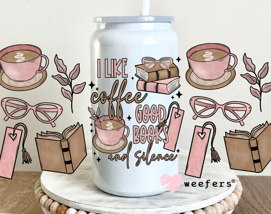 I Like Coffee Good Books and Silence UV DTF Cup Wrap