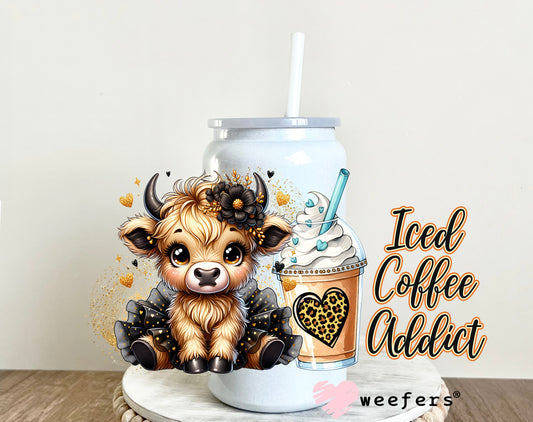 Iced Coffee Addict Bougee Highlander Cow UV DTF Cup Wrap
