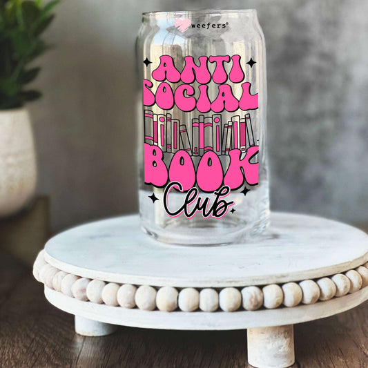 Anti Social Book Club Pink 16oz Libbey Glass Can UV DTF or Sublimation Wrap - Decal