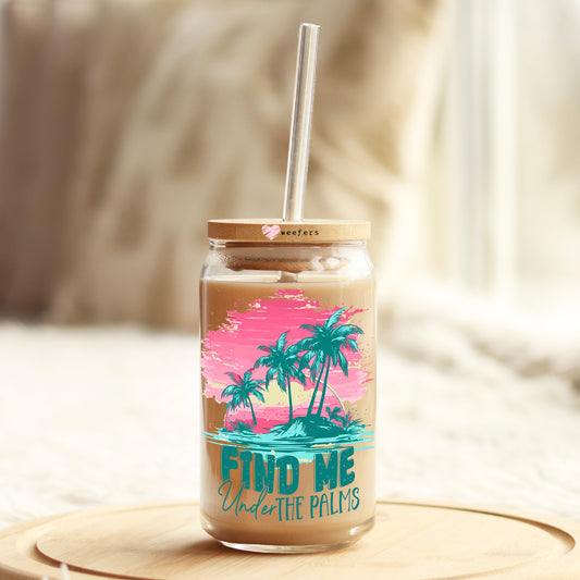 Find Me Under the Palms 16oz Libbey Glass Can UV DTF or Sublimation Wrap Decal Transfer