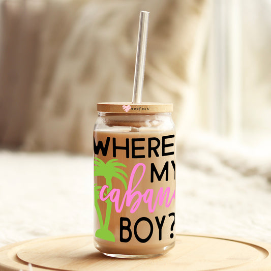 Where's My Cabana Boy? 16oz Libbey Glass Can UV DTF or Sublimation Wrap Decal Transfer