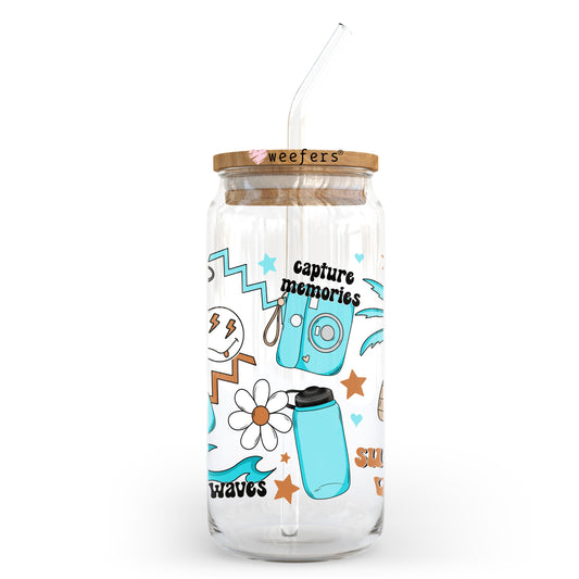Summer Vibes Blue 20oz Libbey Glass Can UV DTF or Sublimation Wrap - Decal Transfer