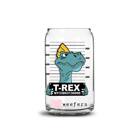 T-Rex Mug Shot 16oz Libbey Glass Can UV DTF or Sublimation Cup Wrap - Decal