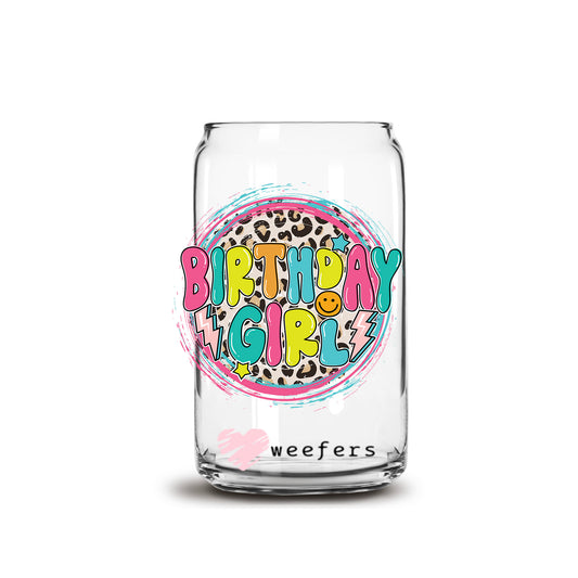 Birthday Girl Cheetah 16oz Libbey Glass Can UV DTF or Sublimation Cup Wrap - Decal Transfer
