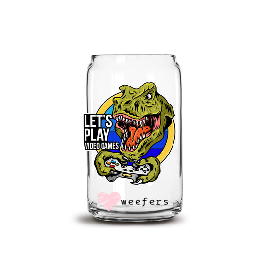 Lets Play TRex 16oz Libbey Glass Can UV DTF or Sublimation Cup Wrap - Decal