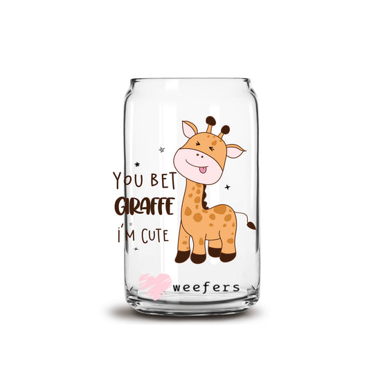 You Bet Your Giraffe I'm Cute 16oz Libbey Glass Can UV DTF or Sublimation Cup Wrap - Decal Transfer