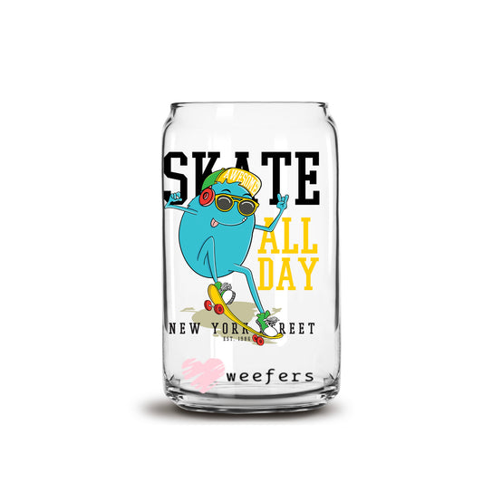 Skate All Day Monster 16oz Libbey Glass Can UV DTF or Sublimation Cup Wrap - Decal