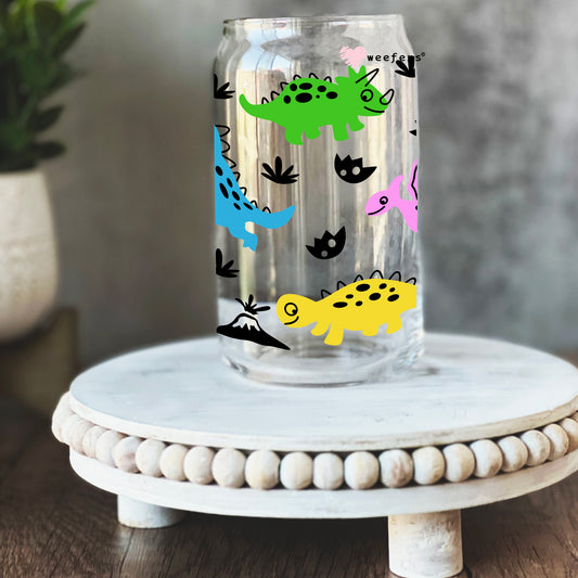 Playful Dinosaurs 16oz Libbey Glass Can UV DTF or Sublimation Wrap - Decal
