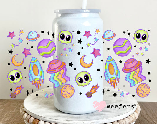Aliens and Rocket Ships Girly UV DTF Cup Wrap