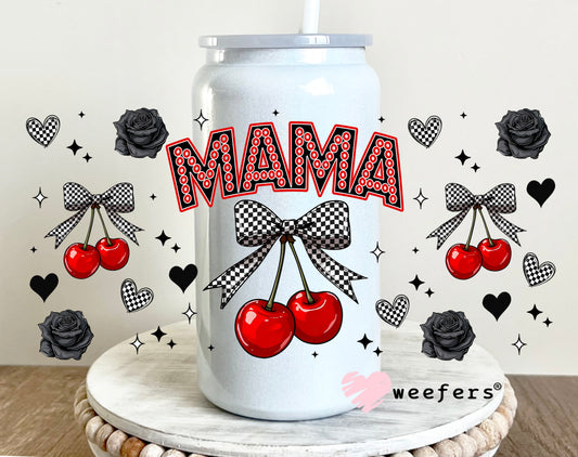 Mama Checkered Bow Cherries UV DTF Cup Wrap - WEEFERS EXCLUSIVE WRAP