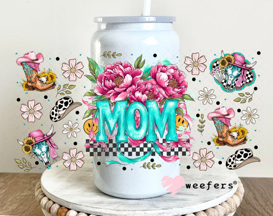 Mom Pink Flowers Western UV DTF Cup Wrap - Weefers Exclusive Wrap