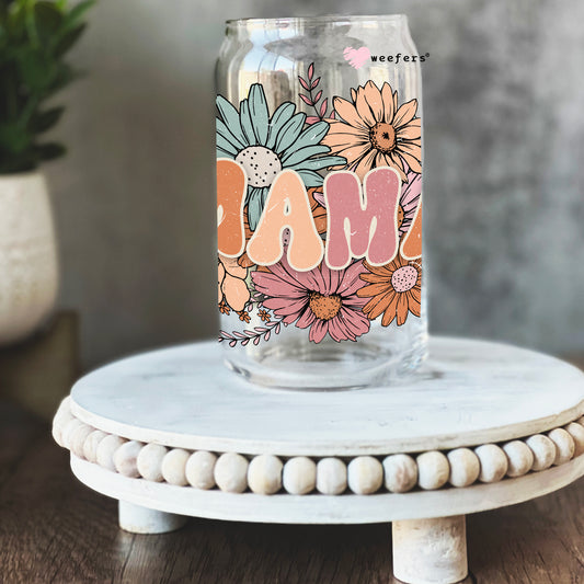 Boho Floral Mama 16oz Libbey Glass Can UV DTF or Sublimation Wrap - Decal