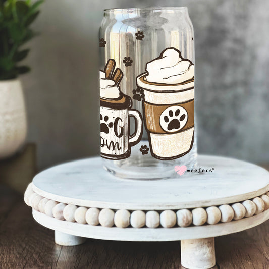 Dog Mom Coffee Lattes Libbey Glass Can UV DTF or Sublimation Wrap - Decal