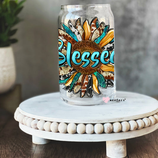 Mother's Day Western Blessed Mom 16oz Libbey Glass Can UV DTF or Sublimation Wrap - Decal