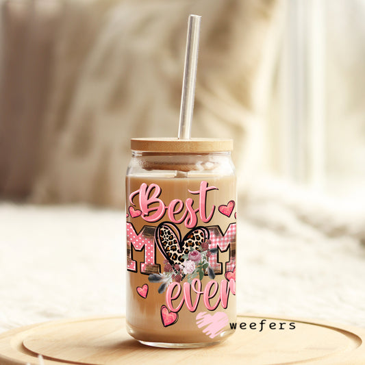 Pink Best Mom Ever Libbey Glass Can UV DTF or Sublimation Wrap - Decal