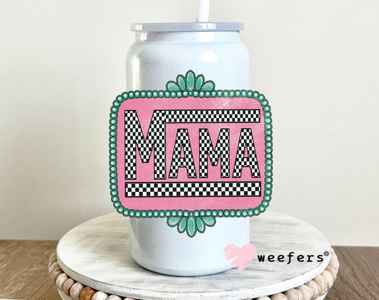 Mama Black Checkered Turquoise Frame UV DTF Decal