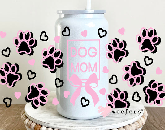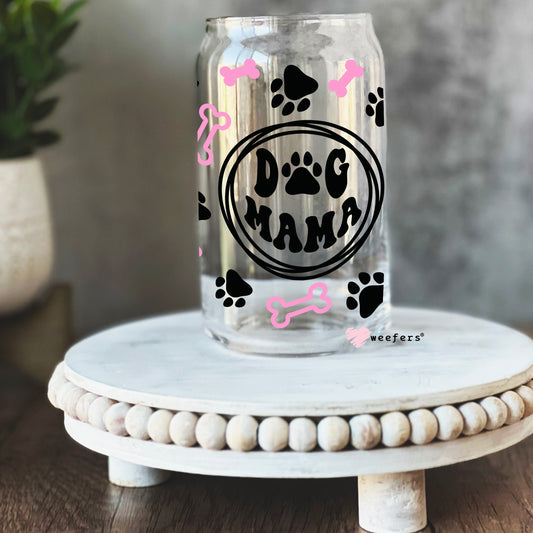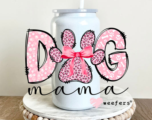Dog Mama Pink Bones Libbey Glass Can Wrap UV DTF Sublimation Transfers