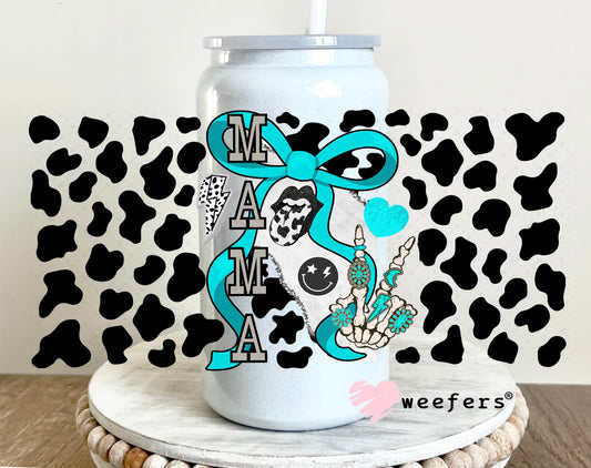 Mama Blue Bow Black Cow Print UV DTF Cup Wrap - Weefers Exclusive Wrap