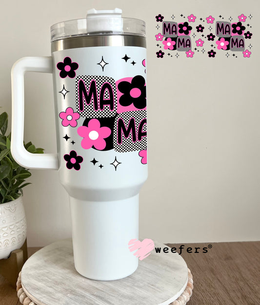 Mama Pink and Black Flowers UV DTF Cup Wrap - WEEFERS EXCLUSIVE WRAP
