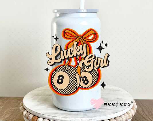 Lucky Girl EightBall Cherries Orange Tan UV DTF Decal