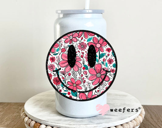Black Mauve Floral Smile Face UV DTF Decal