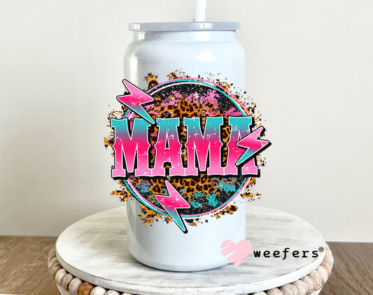 Mama Pink Teal Lightening Bolt UV DTF Decal