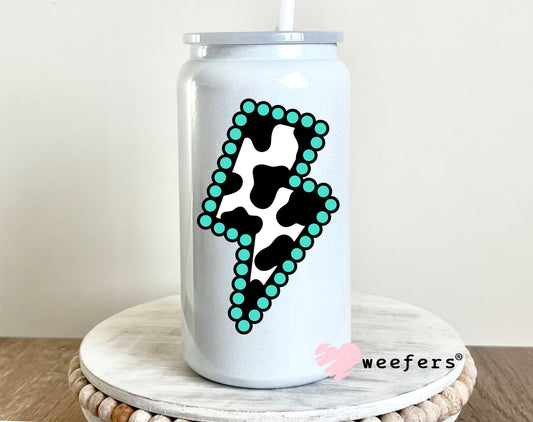 Cow Print Turquoise Lightening Bolt UV DTF Decal
